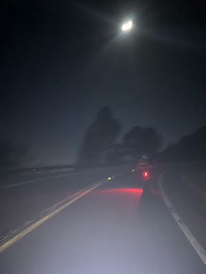The riding out of Malino Basin was good climbing and mostly ridable singletrack to Prison Camp where we dumped out onto the pavement and climbed into the night. We rode mostly together on and off into the night. There was a moon poking through early but then it clouded up and the temp dropped.